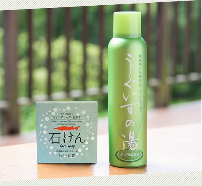 ミネラル豊富な源泉うぐいすの湯とアミノ酸が豊富なキャビアエキスとのコラボレーション。お肌に潤いを与えます。